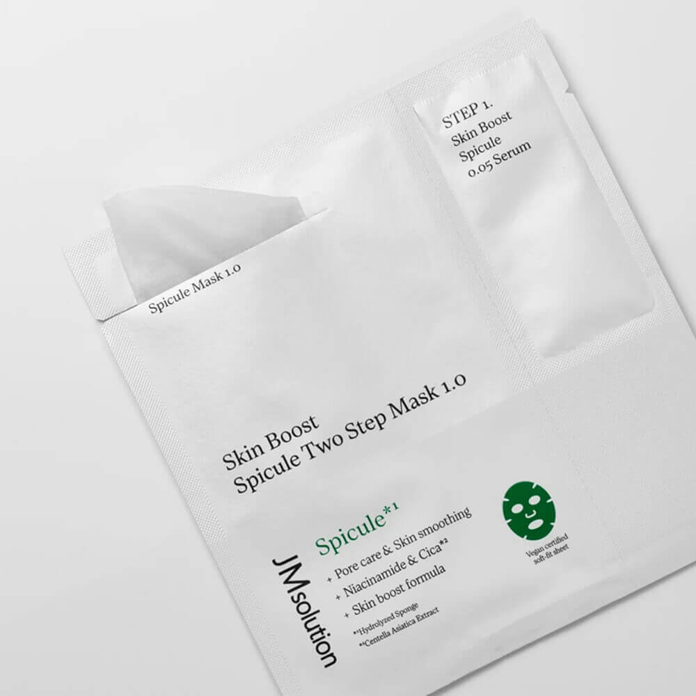 Двухэтапная тканевая маска со спикулами и гиалуроновой кислотой активно восполняет нехватку влаги в клетках, избавляет от ощущения сухости и стянутости, препятствует появлению признаков обезвоженности, также борется с расширенными порами, поддерживает эластичность и упругость, смягчает огрубевшие участки эпидермиса, придаёт здоровое свечение.