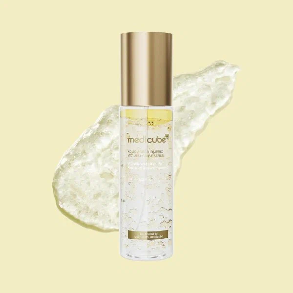 Сыворотка-мист желейная с койевой кислотой Medicube Kojic Acid Turmeric Vita Jelly Mist Serum — инновационное средство с лёгкой желейной текстурой, которое интенсивно увлажняет, осветляет пигментацию и восстанавливает кожу. Быстро впитывается без липкости и жирного блеска, создавая невидимый увлажняющий слой и придавая коже гладкость и сияние.