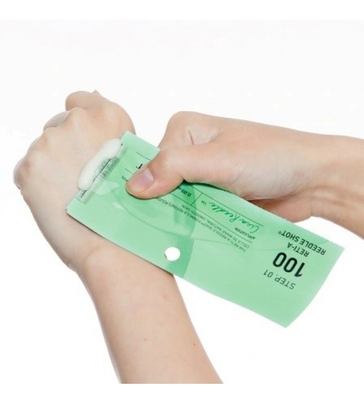 VT Cosmetics RETI-A Reedle Shot 100 2Step Hydrogel Mask — двухступенчатая увлажняющая гидрогелевая маска с микроиглами и ретинолом. Обладает многофункциональным действием: сужает поры, укрепляет капилляры, стимулирует регенерацию клеток, выравнивает тон кожи, повышает упругость и разглаживает морщины.